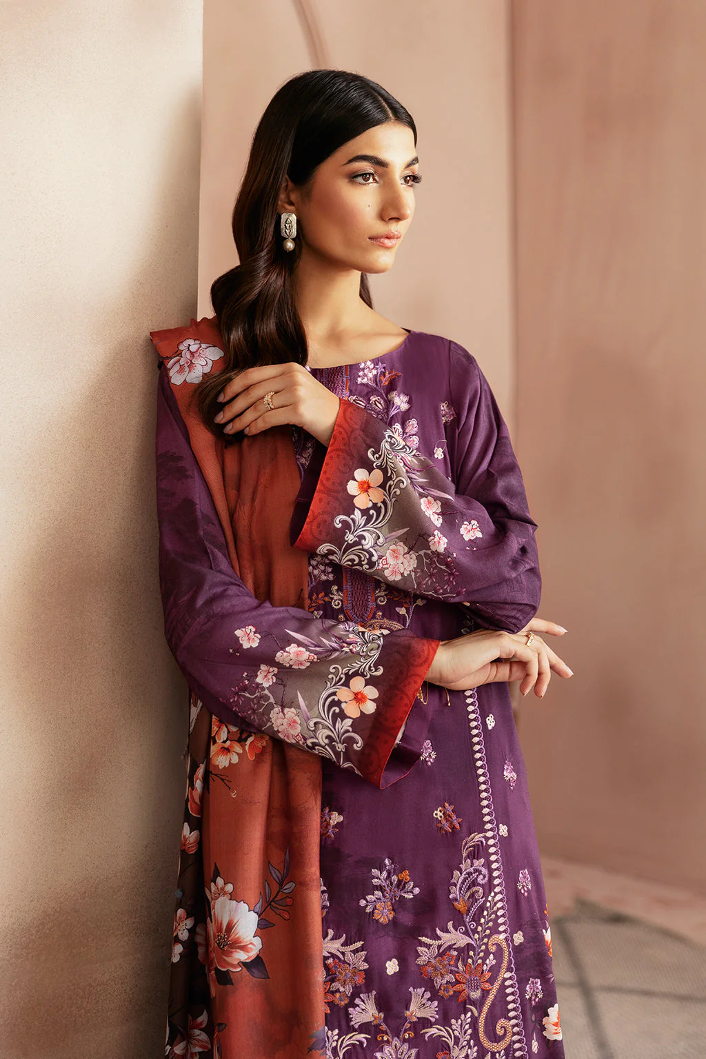 Digital printed embroidered Viscose Front