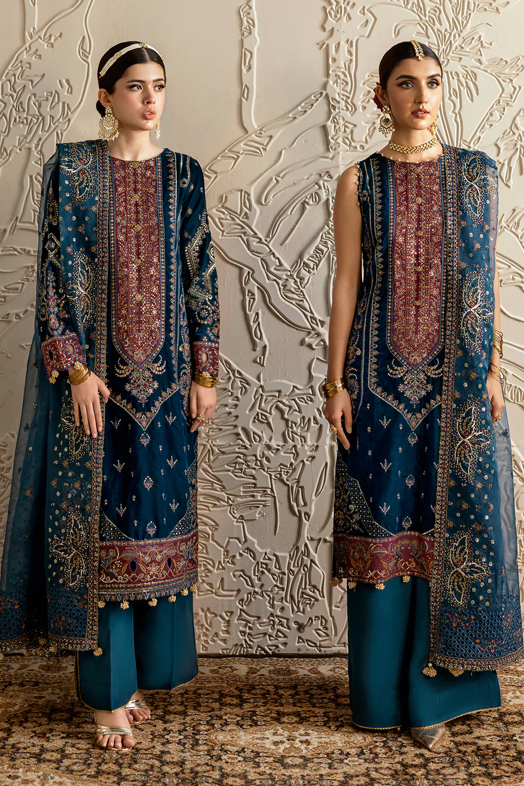 Embroidered Velvet sleeves with sequence
